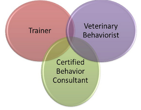 Veterinary Behaviorists have an interest in behavior problems (like the consultant) and they use some training techniques to modify behavior (like the trainer). They have the added benefit of a medical degree so they can most directly treat AND diagnose behavior problems (one stop shopping). The Veterinary Behaviorist does not always use medication to treat behavior problems, but they are the most qualified to see the links between behavior, nutrition and health, and can prescribe medication if necessary.They are often the person that is requested when a behavior is really out of the ordinary, medical issues are suspected/documented, or a last ditch effort before sadder, more drastic measures are taken.