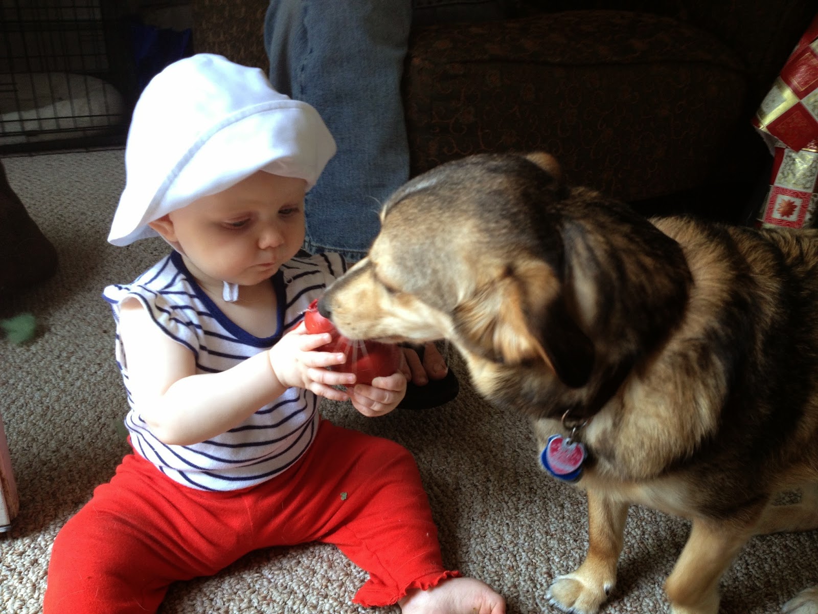 This is my daughter, Aislyn. She is giving her favorite buddy, Bandit, his Kong.
